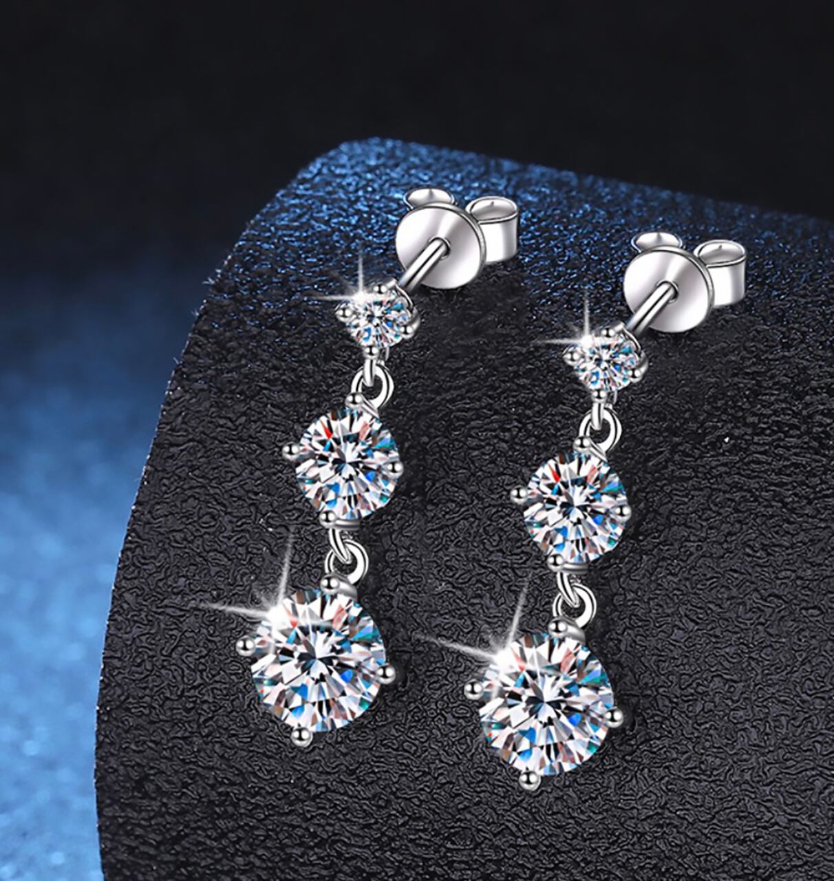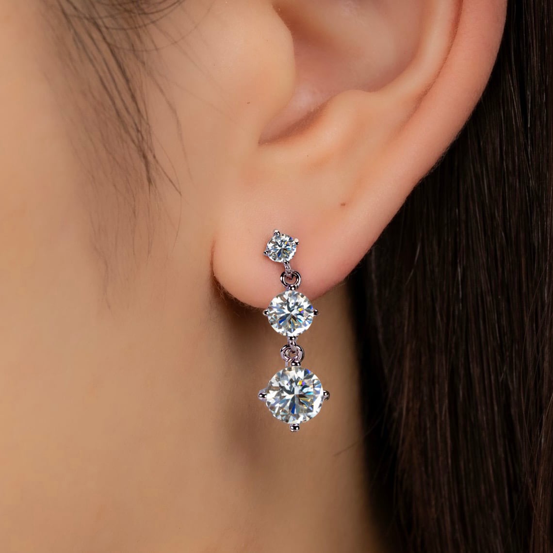 【計3.2ct】優雅 3連 ロング ピアス モアサナイト◆silver925 鑑別書 保証書 レディース 金属アレルギー対応 モアッサナイト