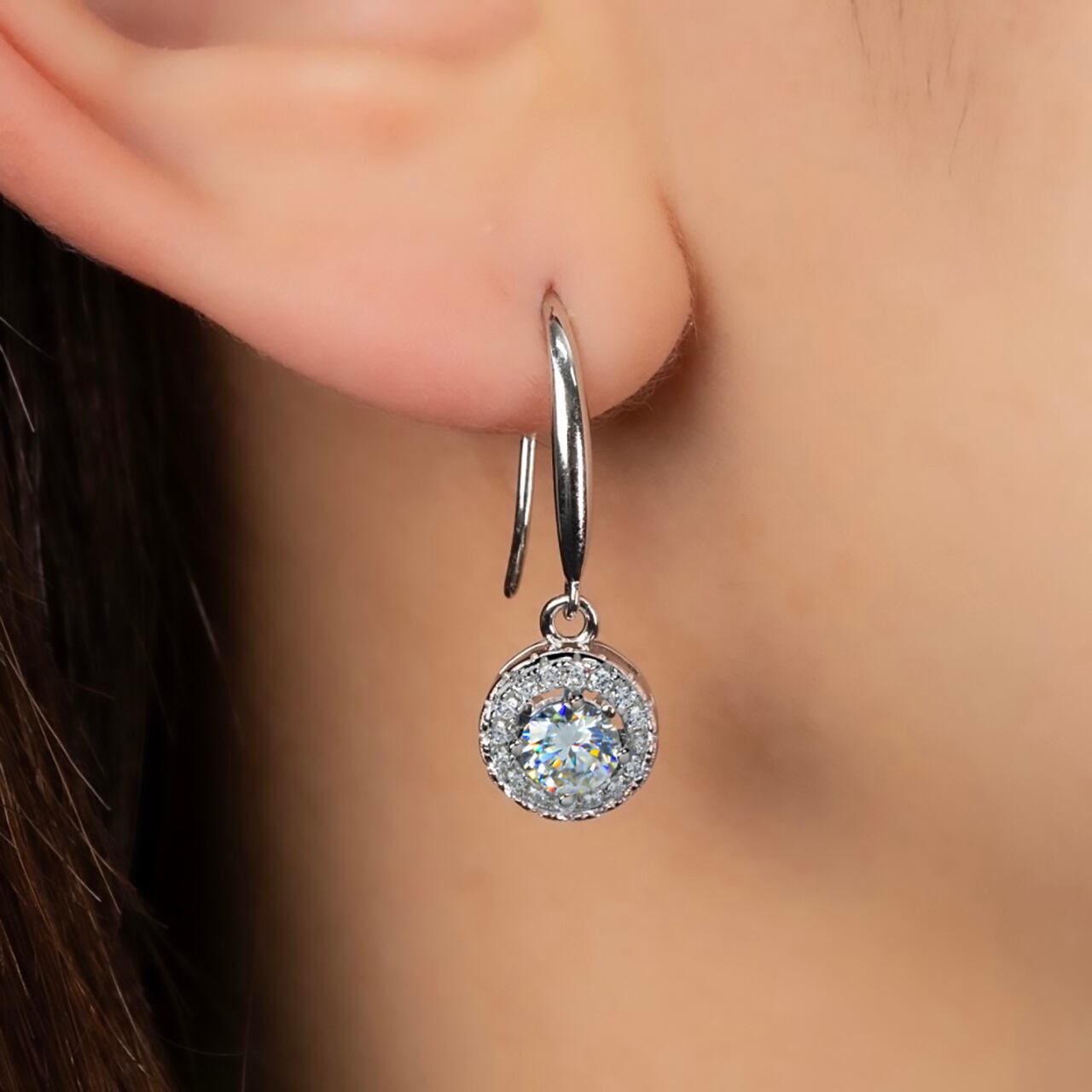 【計1ct】優雅 ダブル サークル フック ピアス モアサナイト◆silver925 鑑別書 保証書 レディース 金属アレルギー対応 モアッサナイト