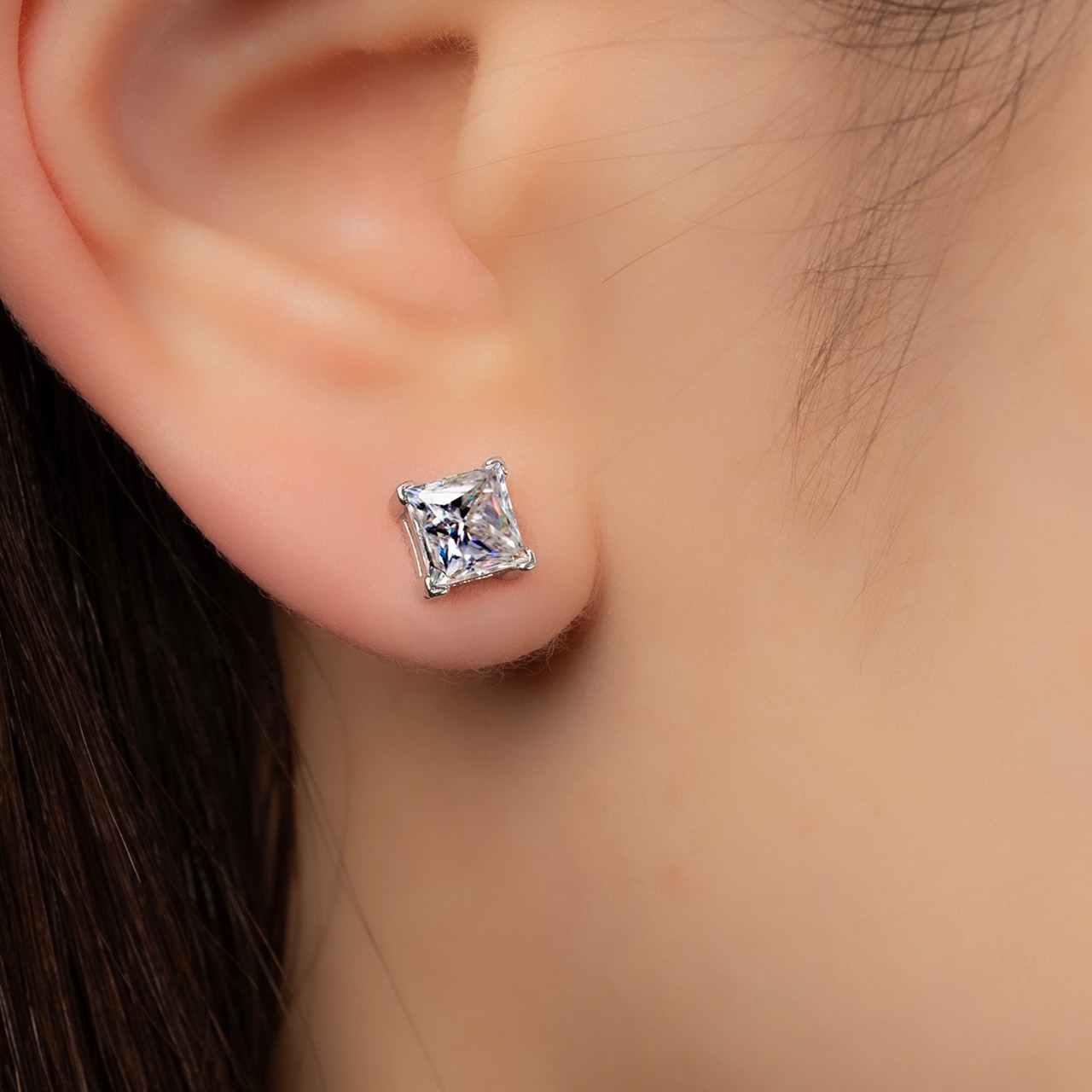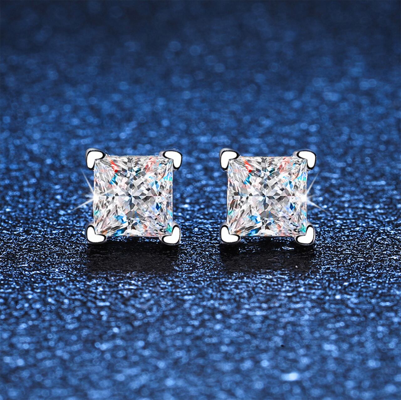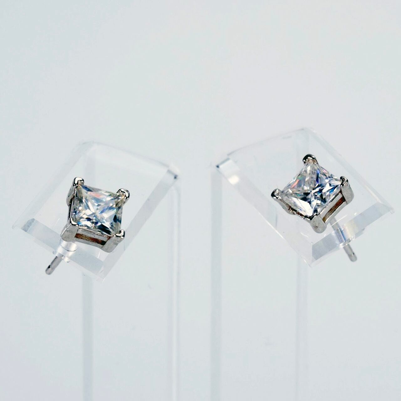 【計2ct】洗練 プリンセスカット スクエア 一粒 ピアス モアサナイト◆silver925 鑑別書 保証書 メンズ レディース 金属アレルギー対応 モアッサナイト