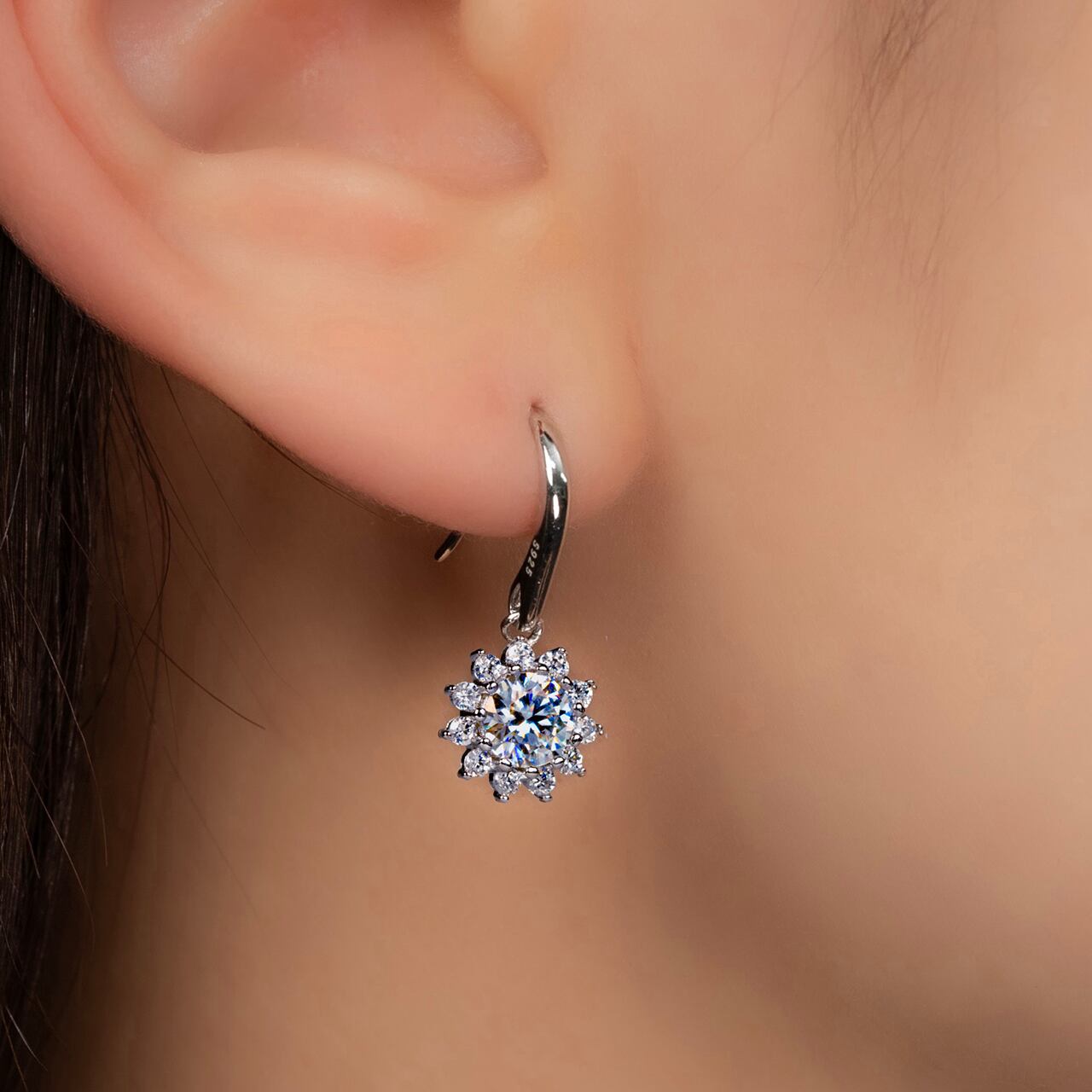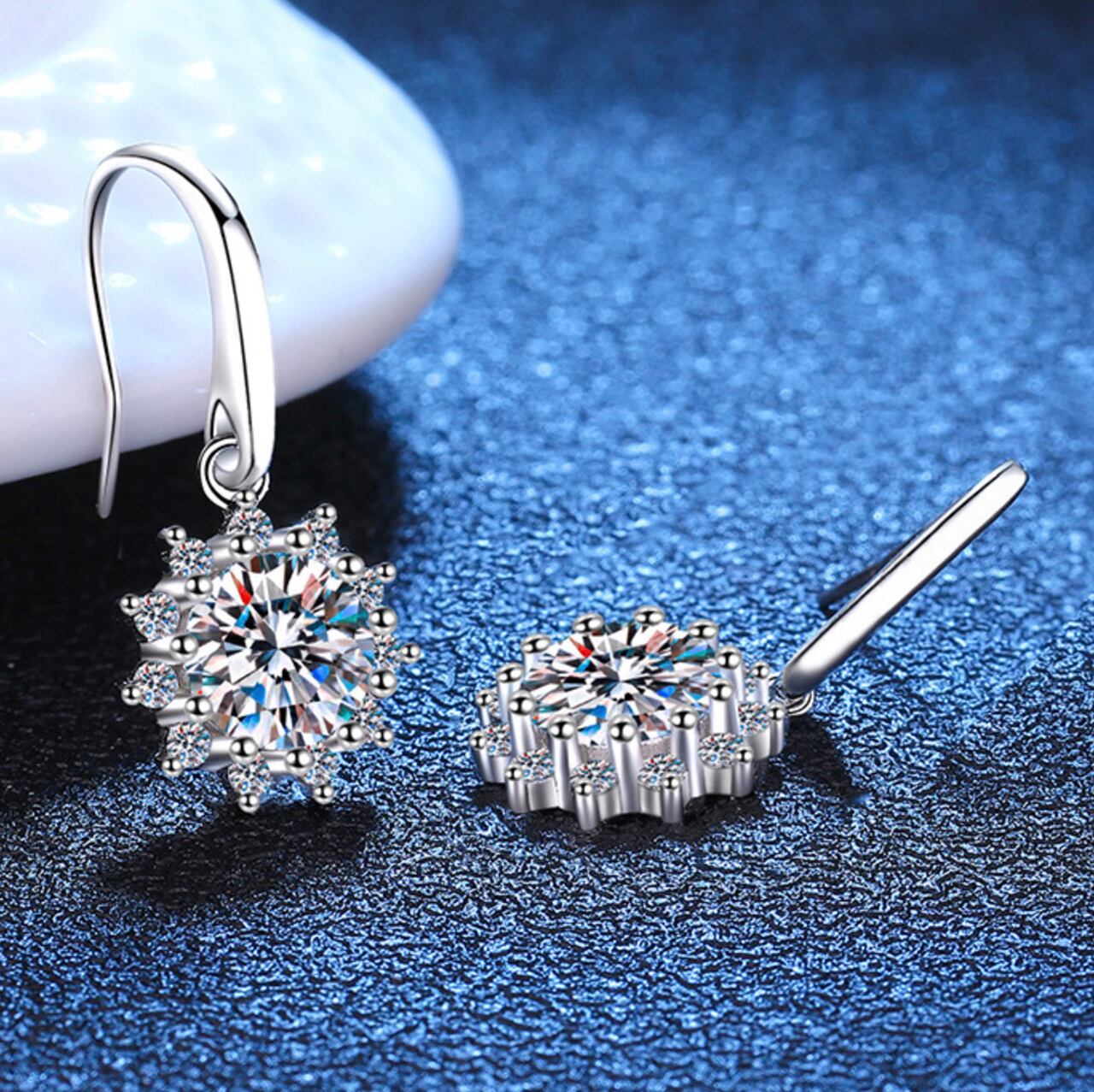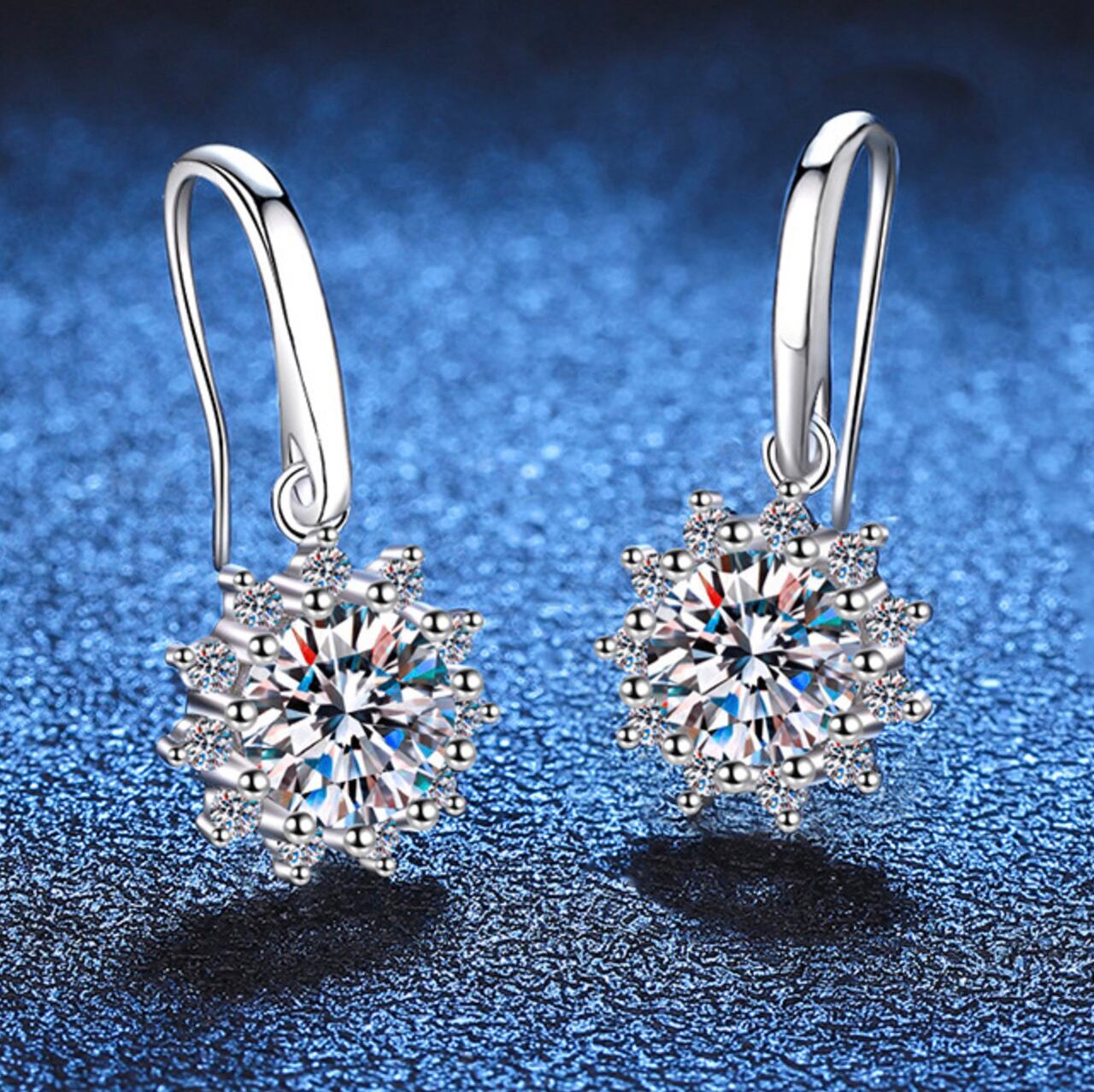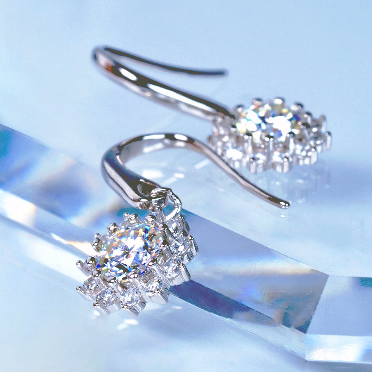 【計1ct】可憐 ダブル フラワー フック ピアス◆silver925 鑑別書 保証書 レディース 金属アレルギー対応 モアッサナイト