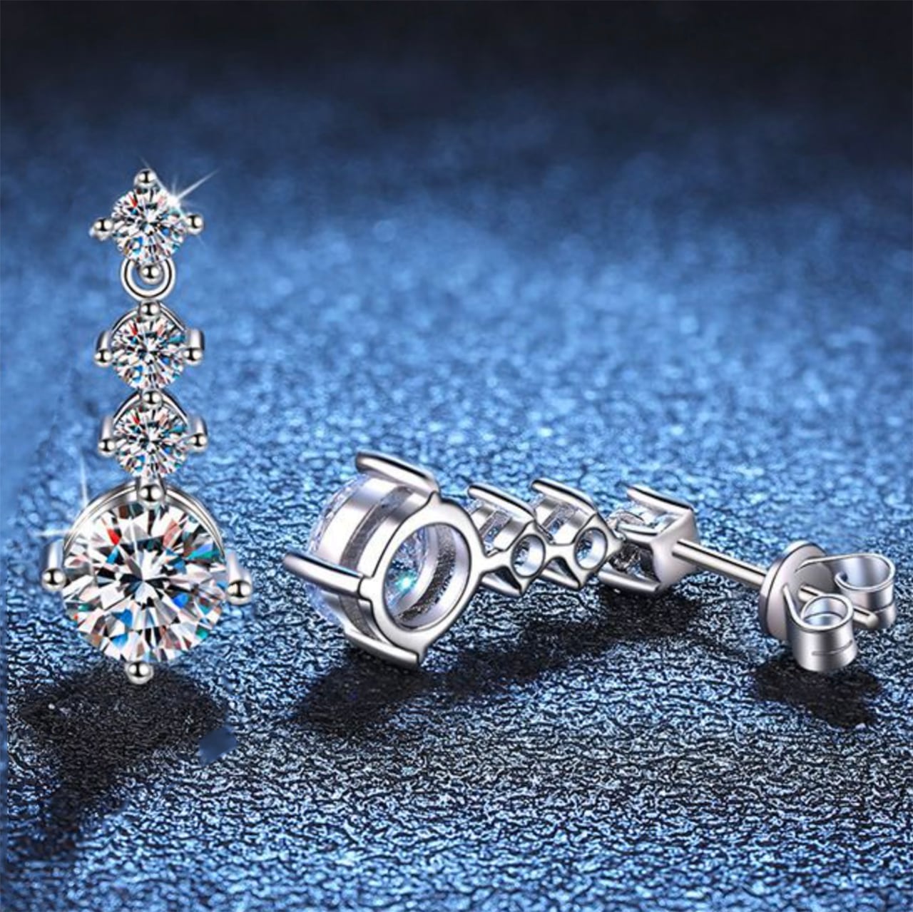 【計2ct】豪華 大粒 3連 スイング ピアス モアサナイト◆silver925 鑑別書 保証書 レディース 金属アレルギー対応 モアッサナイト